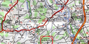 Extrait carte Michelin France, Pays de Loire n°232, 200 000e avec marquage Abbaye de BoisAub |